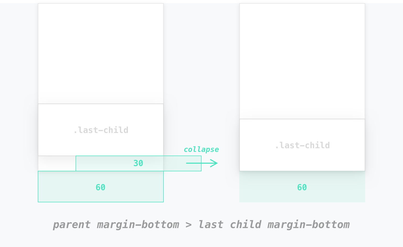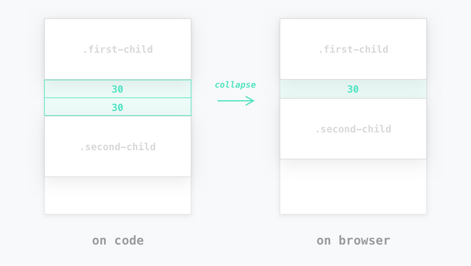 겹쳐진 두 마진 값을 비교해, 더 큰 마진 값으로 상쇄해 렌더링 한다. 만약 겹쳐진 두 값이 동일할 경우 중복을 상쇄해 렌더링한다.
