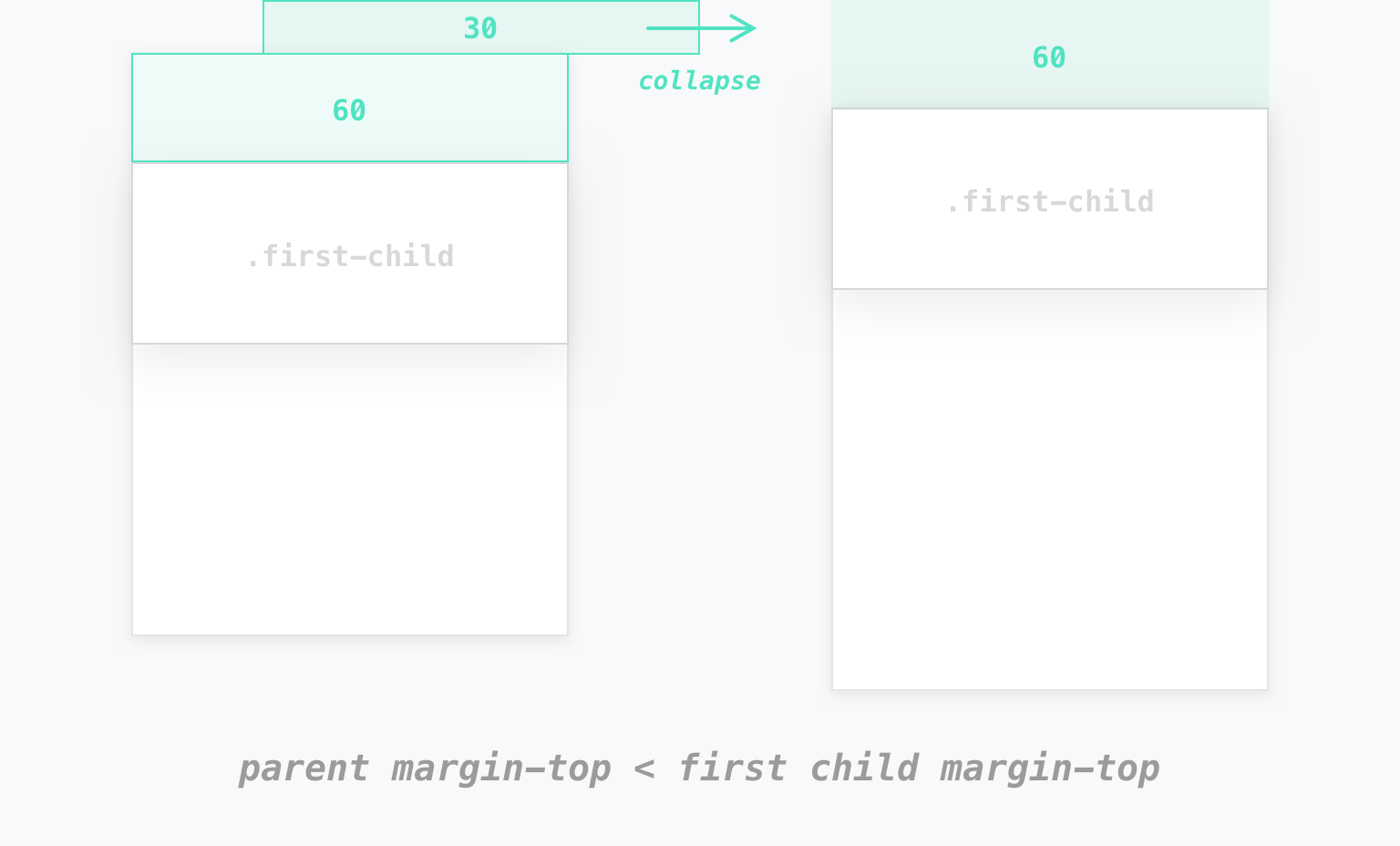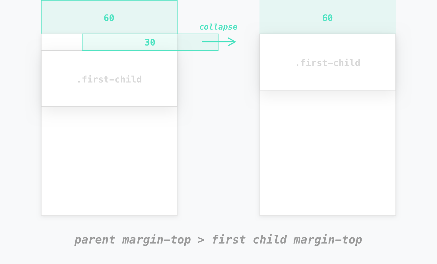 다음과 같이 부모 박스 상단(하단)에 padding 또는 border 값을 주어 벽을 만들어주는 것이 안전하다.이렇게 하면 의도했던 대로 첫 번째(마지막) 자식 요소를 배치할 수 있다.